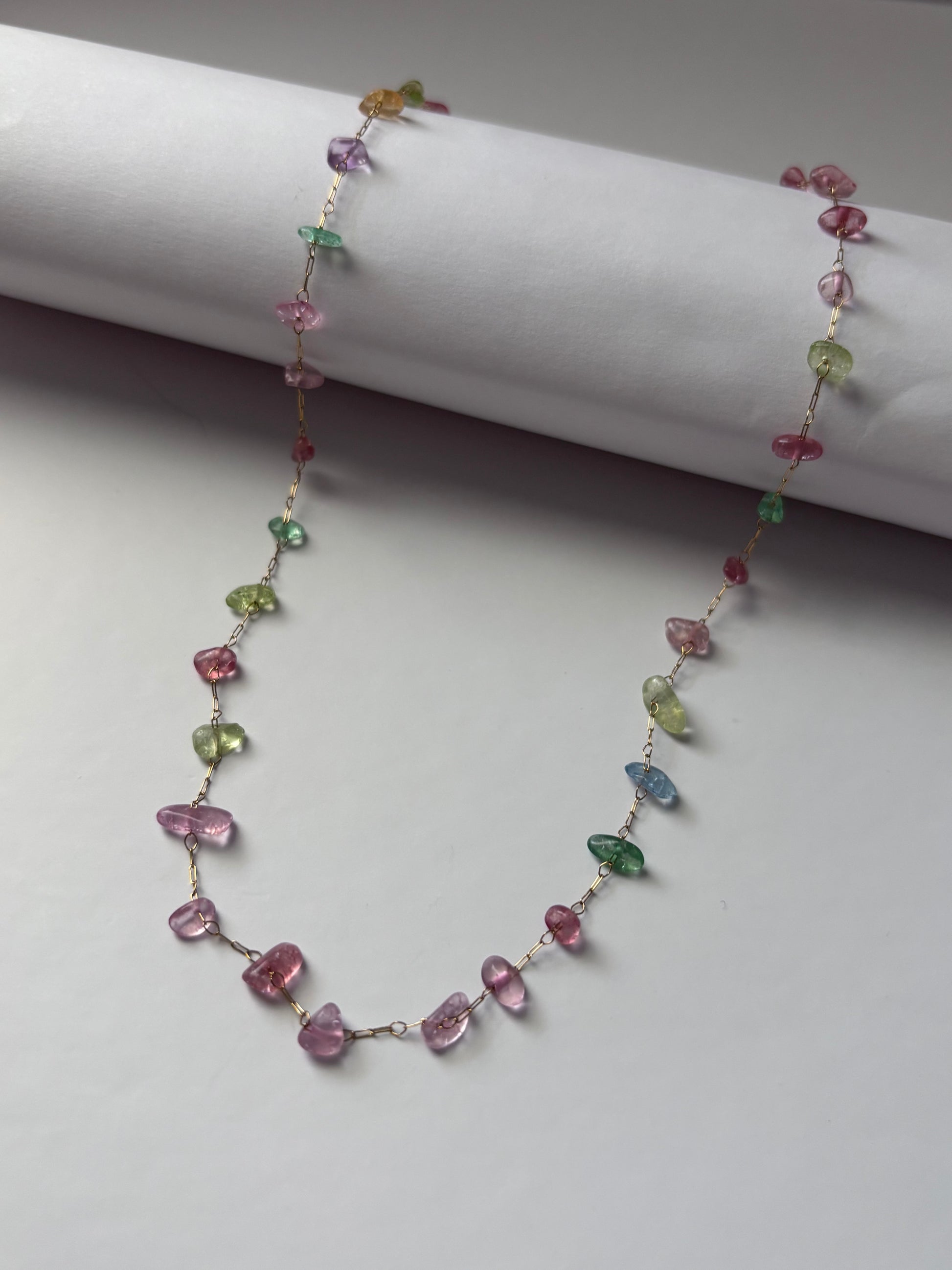 Nuestro Aurora Pastel Necklace está diseñado con mini piedras tipo cristal en tonos arcoíris que añaden un toque femenino, fresco y único a tu estilo. Es perfecto para combinar, usar solo o darle vida a cualquier outfit.