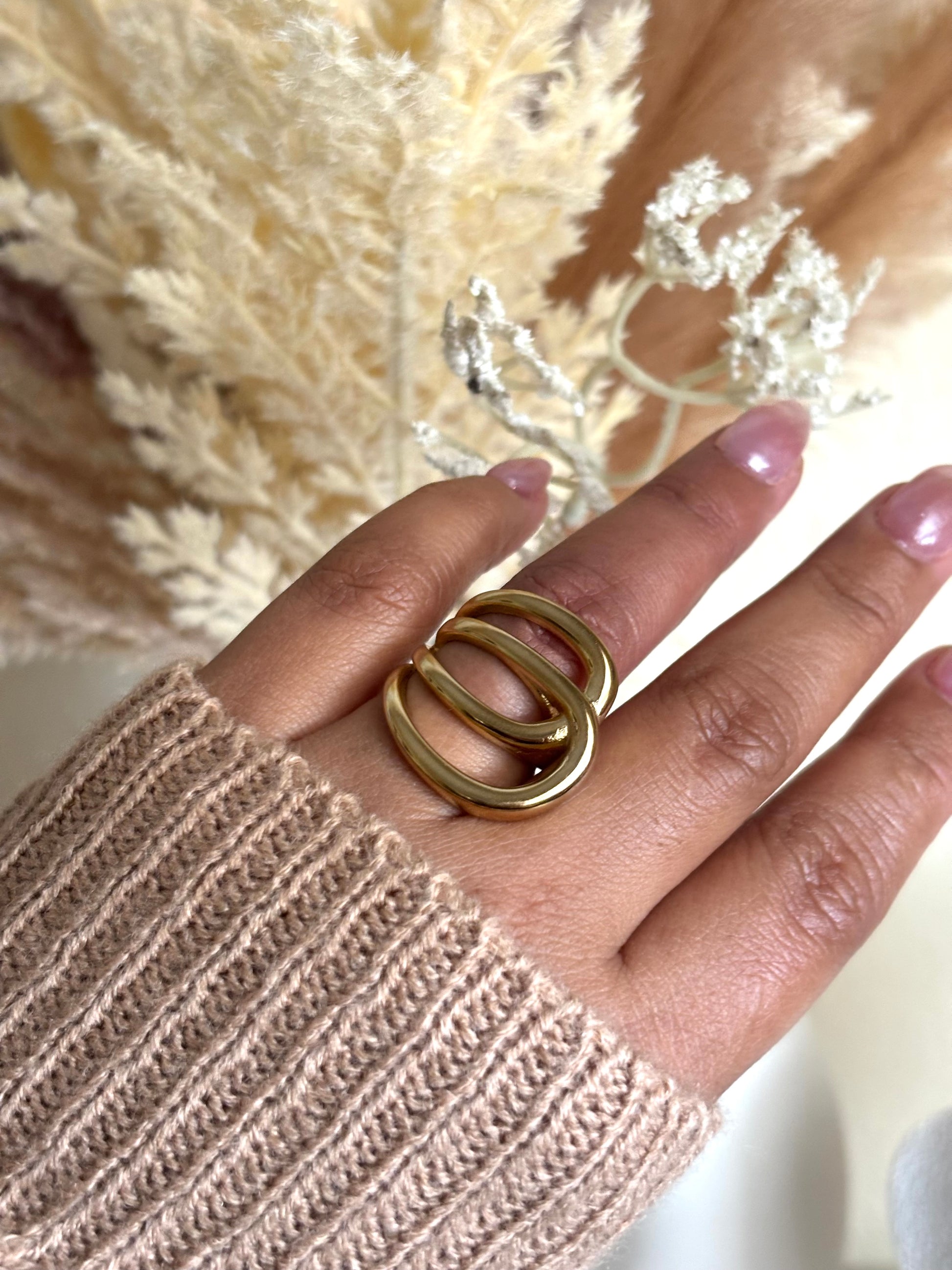 Una pieza statement que une elegancia y carácter. Su diseño curvo y envolvente en acero inoxidable 304 bañado en oro le da un toque moderno y sofisticado. Ideal para destacar en cualquier ocasión sin preocuparte por el desgaste: es resistente al agua, hipoalergénica y duradera.